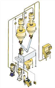 散料卸料和存储系统可在提高生产和工程的效率的同时减少劳动力、物料和能源费用??ǘ笙低尘弑父菥咛逍枰可矶┳瞿芫苁奔淇佳榈男读虾椭嫦低车哪芰?。通过考虑工厂的布局情况,考虑物料接收方式、物料特征和输送距离以及速度,确保卸料和加载木粉、PVC混合物、可可粉、葡萄糖、钛白粉、苏打灰、碳酸钙、苯甲酸钠等物料和许多更难装卸物料具有更高效的系统性能。