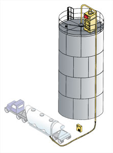 卡车卸料系统包括一个装在储料罐上的卡车装满报警面板。操作人员可通过手动软管开关站选择卸料位置。